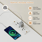 Built-in charging station with 2 AC outlets, a USB A port, and a USB C port