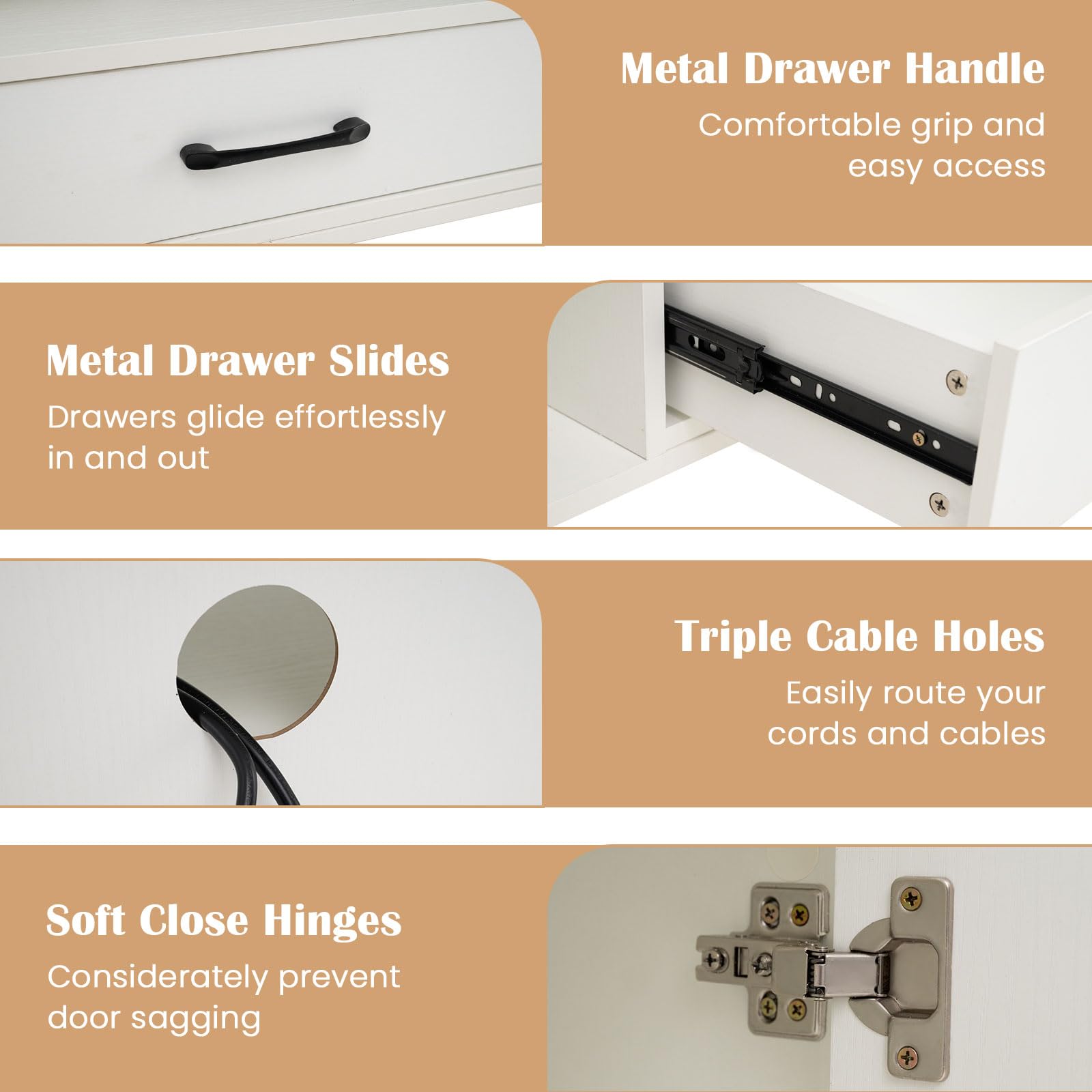 Metal drawer slides ensure drawers glide effortlessly in and out