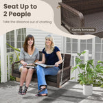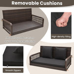 The swing bench comes with hanging chains that allow for easy installation and adjustment. And then, the comfy back and seat cushions are ready to bring you relaxing experience. So, you can invite your beloved one to enjoy this cozy and relaxed moment. No matter how long you have swinging, the 800 lbs weight capacity will always ensure stability and safety. Crafted with a wicker construction, this hanging porch swing exudes a timeless elegance that can elevate the aesthetics of your deck, garden or yard. Whether you want to relax after a tiring day or have a heartwarming conversation with a loved one, the 2-seater hanging patio bench offers the perfect spot to unwind.